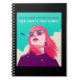 This black notebook combines style and empowerment in a unique design. The top of the cover features a turquoise, stylized sky with the powerful message, "Where there is no ceiling, there is no limit." Directly beneath, a red-haired, light-skinned woman with flowing hair is shown, her sunglasses reflecting the silhouette of buildings in a desert town. A bird flies high above her on the horizon, symbolizing freedom and limitless possibilities.