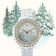 Women's Winter Forest Rhinestone Watch – White Enamel – Custom Holiday Gift.