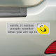 The product works very well. Zazzle delivered it in a sturdy packaging, with a special folder for the sticker so it wouldn't bend in the mail or anything, which I appreciate. Sticks well to the car, and looks good! The image quality and colour all looks good to me. Up close and afar, I see no problems with it.