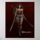 Check out this highly detailed comic art for Wonder Woman, brandishing a weapon in each hand! Here she holds the Sword of Justice, a long spear, and has a shield on her back.