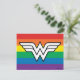 DC Pride | Wonder Woman's iconic logo with layers of rainbow colours inside it.