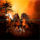 Wonderful horses running by a forest