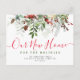 Announce your new home to family and friends with this modern design comprising of white and red holiday script and a wonderful photo.