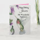 Celebrate her birthday with a lovely hummingbird watercolor card for your wonderful stepsister. The sweet bird and garden flowers were designed with soft colors of green, cream and pink. The stylish and fashionable card is full ol love, joy and happy wishes.