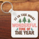 Wonderful Time Retro Groovy Christmas Holidays Keychain