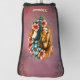 Wonderful woman whose long, flowing hair shimmers in a deep blue, reminiscent of the vastness of the ocean. Her face, which shows gentle and expressive features, is partially hidden by a majestic lion's head. The lion's mane shines in a bright orange, which creates a powerful contrast to the woman's delicate features, symbolizing strength and grace at the same time. The design exudes a magical atmosphere that captures both the strength and delicacy of the woman depicted.