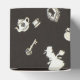 Square classic-style favour box with an image of a black and white Alice in Wonderland design wrapped with an optional red satin ribbon accented with a teapot embossed on gold sealing wax. See the entire Wonderland Favour Box collection in the PARTY FAVORS section.