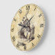 Vintage illustration of Alice in Wonderland's White Rabbit on a faded damask wallpaper background with roman numeral clock face.