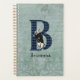 Whimsical design for Alice in Wonderland lovers of all ages features capital letter / initial B with black and blue harlequin fill and original White Rabbit illustration that has been tinted, on a distressed vintage floral and handwriting blue tinted background. Personalize with name or other message