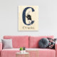 Whimsical design for Alice in Wonderland lovers of all ages features capital letter / initial C with black and blue harlequin fill and original White Rabbit illustration that has been tinted, on a faux wood panel background. Personalize with name or other message