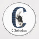 A harlequin pattern filled letter / monogram / initial "C" with colorized version of the original vintage White Rabbit illustration. Personalize further with name or other message