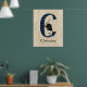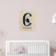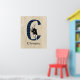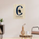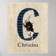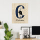 Whimsical design for Alice in Wonderland lovers of all ages features capital letter / initial C with black and blue harlequin fill and original White Rabbit illustration that has been tinted, on a faux wood panel background. Personalize with name or other message