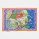 Enjoy the quirky folk art houses in this brightly colored wonky landscape.