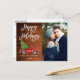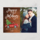 Rustic Wood Brush Script Watercolor Vintage Red Truck with Christmas Tree - Happy Holidays Couple Photo Postcard