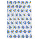 Wooden blue daisy flower pattern on white background.