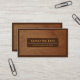 A wood grain cover is accentuated by a brown column box at the center. Here lies your prestigious name and business name. A brown rectangular border encapsulates the entire outer rim of the card.