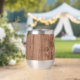Showcase your brand in style with this customizable thermal wine tumbler featuring your business logo, website, and QR code on a rustic wood grain background. A practical and professional choice for company events, client gifts, or team swag with a rustic touch.