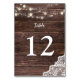 Dress up your wedding or party tables with this wood, lace, string lights Table Number Card.