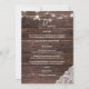 Wood, lace, string lights wedding reception menu. Celebrate your wedding in your reception with style and cuteness with this faux wood menu. Customize with your entree options.