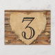 Fun rustic country table number card featuring image of torn parchment heart over wood planks. Make a separate card for each table.