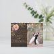 Rustic, modern, simple wood wedding thank you card, with watercolor blush pink flowers and custom photo.