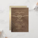 Simple, elegant, minimalist rustic wood wedding invitation with faux gold rope heart and modern calligraphy script.
