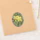 This oval shaped sticker features an illustration of wood sorrel leaves and blossoms. Two shades of green for the leaves is complemented by brown linework. A woodblock style gives this artwork a handmade and unique quality. This sticker is perfect when you would like to bring a touch of rustic nature to your home. Available in violet or yellow flowers. From the original artwork of Carolyn A Pappas.