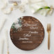 This elegant brown wood design featuring lovely string lights and white roses design can be personalized with your Wedding details.