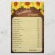 Wood Sunflower Blossom Greenery Bridal Shower Game