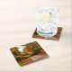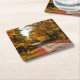 Wood trail with fall foliage square paper coaster