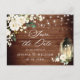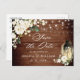 Wood White Roses Rustic Wedding Save the Date Postcard.