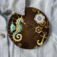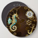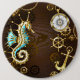 Wooden Background with Mechanical Seahorse 6 Inch Round Button