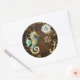 Wooden Background with Mechanical Seahorse Classic Round Sticker
