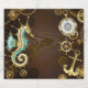 Wooden Background with Mechanical Seahorse Liquor Bottle Label
