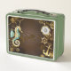 Wooden Background with Mechanical Seahorse Metal Lunch Box
