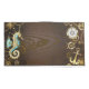 Brown wooden background with sea, mechanical ridge, an antique steering wheel, golden anchor and various gold and brass gears. Steampunk style.