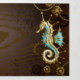 Wooden Background with Mechanical Seahorse Tri-Fold Card