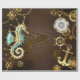Wooden Background with Mechanical Seahorse Wrapping Paper