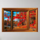 Wooden Bay Window Illusion - Autumn Landscape Poster