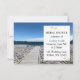 A wooden dock on a rocky beach on the ocean. A lovely nature theme bridal shower invitation featuring starfish to accent. Customize with your bridal shower information as desired.