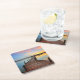 Wooden Dock Seascape in Colourful Sunset Square Paper Coaster