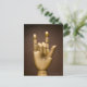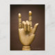 Wooden hand index and small finger extended, postcard