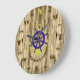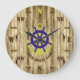 A nautical themed ships wheel and anchor design on faux wood perfect for sailors on board their boat or yacht, easily add your vessels name to the custom text template to create a unique gift.