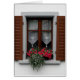 Window frame and shutters with red flowers in Vaduz, Liechtenstein.