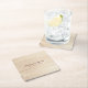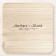 Wooden textured paper coaster features a light brown wood grain textured background. © Morning 6
