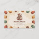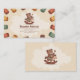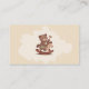 A charming business card for a wood toys maker featuring a whimsical illustration of a smiling bear riding a wooden rocking horse against a soft, stain background. The bear wears a tiny craftsman's apron and holds a small wooden tool.