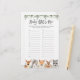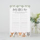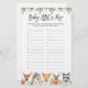 Woodland animals themed baby shower ABC's race game card features a watercolor woodland animals illustration and watercolor greenery eucalyptus garland and elegant handwritten style font.