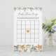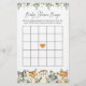 Little Woodland themed baby shower bingo game card features a watercolor woodland animals illustration and watercolor greenery eucalyptus garland and elegant handwritten style font.