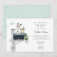 A baby shower by mail invitation is perfect for those that live a long distance from loved ones, but still want to shower the mommy to be with love and gifts to prepare her for baby's arrival. This long distance shower by mail invitation features a hand painted mailbox filled with eucalyptus and greenery with woodland animals sitting on top and the request poem Gathering loved ones at this time can be so hard