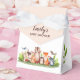 Cute watercolor woodland animals theme favour box with simple white background and foliage.